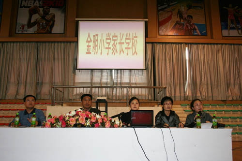 金明小学举办家长学校促进了“幼小衔接”工作 9月27日下午,金明小学举办了家长学校,邀请一年级家长到校参加活动。活动在校室内体育馆举行,首先,金明中小学校长李智慧同志介绍了学校概况、小学生入学准备、初入学儿童心理障碍;接着金明小学副校长秦渝同志对一个月以来一年级教育教学情况进行了反馈,与家长交流了家庭教育问题;然后,观看了陈忠联教授的讲座;最后,家长回到各班,与班主任和任课教师进行了交流。